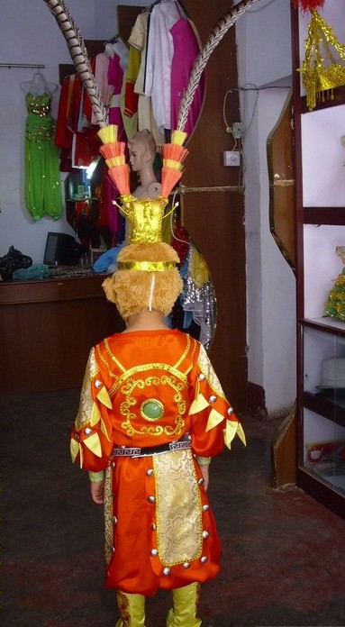 This detailed Monkey King costume allows children to embody the legendary Sun Wukong from the classic Chinese epic, Journey to the West. The set includes a striking red and gold armored robe, a textured monkey mask, and an elaborate headdress featuring long, dramatic pheasant feathers. Perfect for Halloween, school plays, or cultural festivals, this outfit captures the vibrant aesthetic of traditional Chinese opera. Made from high-quality fabrics, it offers both durability and comfort for energetic role-playing and performances.