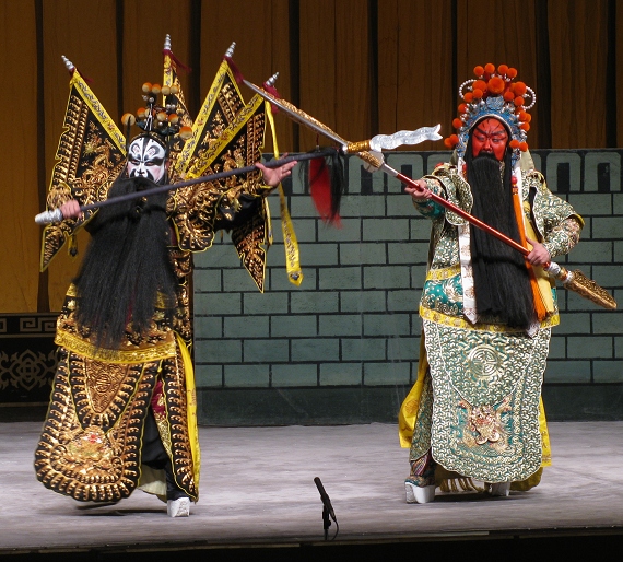 Professional Peking Opera General Costume Black Gold Warrior Armor with Flags for Stage Performance