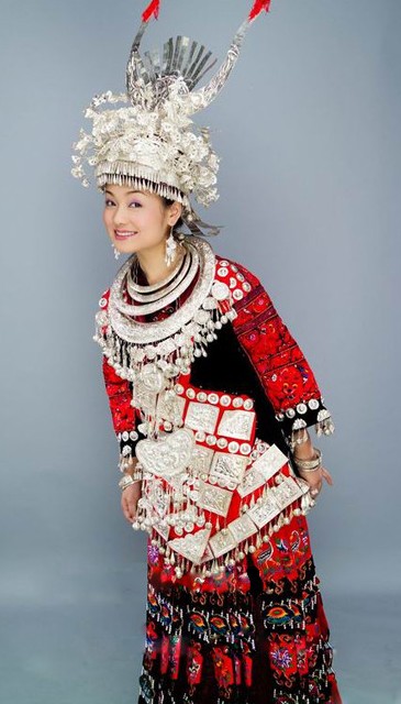 This exquisite traditional Miao costume features a stunning silver headdress with buffalo horns and intricate embroidery on a vibrant red jacket. Designed for cultural performances and festivals, the outfit includes a hand-embroidered top, a flowing skirt with ethnic patterns, and heavy silver neck ornaments. Crafted with attention to detail, this ensemble celebrates the rich heritage of the Miao ethnic minority, making it perfect for stage dancers and cultural enthusiasts.