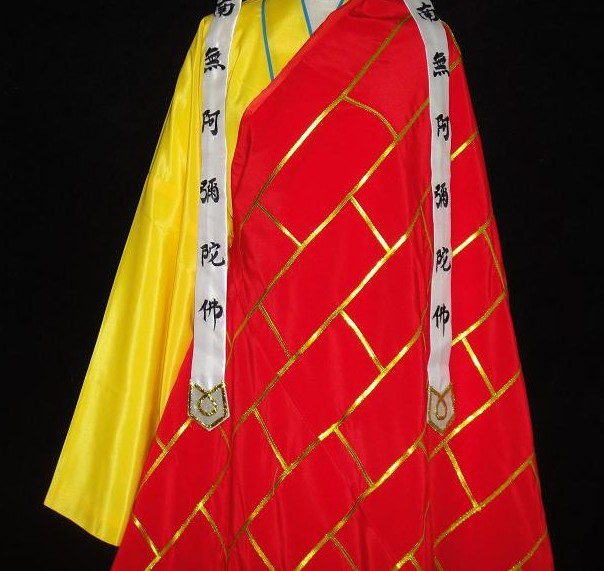 This authentic traditional Chinese costume features a magnificent Five Buddha Crown adorned with intricate embroidery and a striking red Kasaya robe with gold lattice detailing. Designed for portraying the legendary monk Tang Sanzang, this outfit includes flowing white sashes inscribed with sacred Buddhist mantras. Crafted from vibrant, high-quality fabrics, it is perfect for stage performances, cultural festivals, cosplay events, and religious ceremonies. The ensemble captures the spiritual essence of Mahayana Buddhism, making it an ideal choice for actors and enthusiasts of traditional Chinese opera.