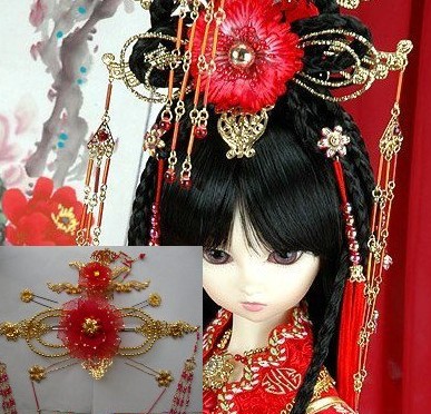 This exquisite red Hanfu features intricate gold embroidery and flowing fabrics, designed specifically for ball-jointed dolls. Perfect for collectors and cosplayers, this traditional wedding ensemble includes a majestic phoenix crown and wide-sleeved robe. Celebrate Chinese heritage with this stunning ancient costume that captures the elegance of historical bridal attire. The detailed craftsmanship makes it an ideal addition to any doll's wardrobe for display or photography.