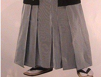 This authentic men's black montsuki kimono set features traditional white family crests and is paired with classic striped hakama pants for a distinguished, formal appearance. Ideal for Japanese weddings, tea ceremonies, martial arts demonstrations, or cultural festivals, this outfit embodies the elegance and dignity of samurai heritage. The ensemble is completed with a crisp white collar and a decorative fan, offering a complete traditional costume experience made from comfortable, flowing fabric.
