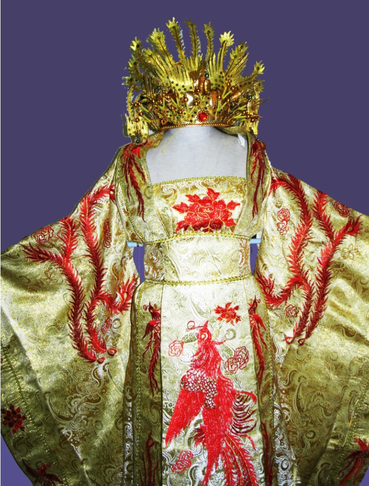 Experience the grandeur of ancient Chinese royalty with this exquisite Ming Dynasty-style wedding ensemble, featuring intricate gold embroidery of auspicious dragons and phoenixes. Crafted from luxurious brocade fabric, the set includes a majestic phoenix crown for the bride and a matching imperial hat for the groom, symbolizing a harmonious and prosperous union. Perfect for traditional wedding ceremonies, cultural performances, or professional photography, these costumes allow couples to embody the elegance and dignity of historical Chinese aristocracy.