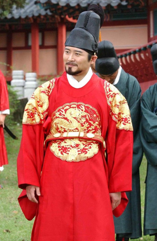 Step into the role of a Joseon Dynasty monarch with this majestic red Gonryongpo, featuring intricate gold dragon embroidery that symbolizes supreme power and authority. Crafted from high-quality fabric with wide, flowing sleeves, this traditional Korean hanbok offers a dignified silhouette perfect for historical reenactments and cultural performances. Whether for a theatrical production, a photoshoot, or a festival, this complete ensemble including the traditional black hat ensures an authentic and regal appearance. Embrace the rich heritage of Korean history with this stunning royal attire designed for men seeking a grand traditional look.