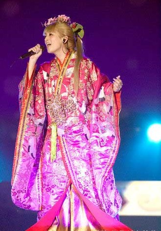 This exquisite pink Japanese kimono features elaborate embroidery of auspicious white cranes and blooming plum blossoms, symbolizing longevity and good fortune. Designed with voluminous sleeves and a long, sweeping train, it is crafted from lustrous fabric ideal for creating a dramatic stage presence. Perfect for singers, cultural festivals, or theatrical productions, this garment embodies the timeless elegance of traditional Asian attire.