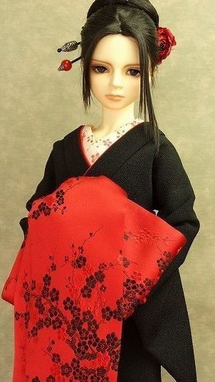 This exquisite doll attire features a sophisticated black kimono robe paired with a vibrant red obi sash detailed with traditional floral motifs. The ensemble is completed by a dramatic, floor-sweeping train showcasing white fabric with red blossom patterns, evoking the grace of classical Asian fashion. Matching floral hair accessories are included to complete the authentic look. Designed for high-quality display and photography, this outfit is a perfect fit for ball-jointed dolls and enthusiasts of traditional Asian culture.