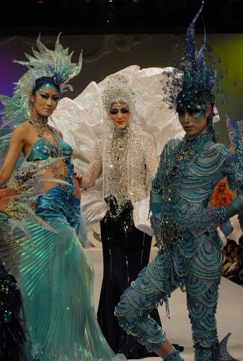 This breathtaking blue fantasy costume features an elaborate sculptural headpiece and expansive, wing-like shoulder attachments adorned with shimmering sequins and intricate beadwork. Crafted for maximum visual impact, the fitted bodice is densely embellished with crystals and pearls, creating a mesmerizing aquatic aesthetic perfect for the spotlight. Ideal for high-energy carnival parades, theatrical stage performances, or avant-garde fashion shows, this ensemble embodies the spirit of festive celebration and artistic expression.