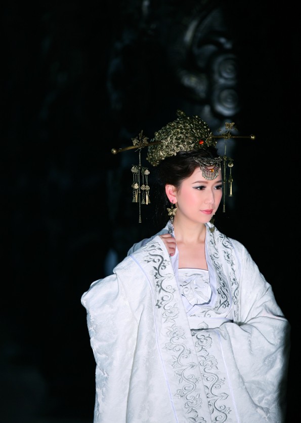 Step into the world of ancient legends with this exquisite white Hanfu, designed to embody the grace of a celestial fairy or royal princess. Crafted from flowing, premium fabric featuring intricate jacquard patterns, this traditional Chinese costume boasts dramatic wide sleeves that create a stunning visual effect in motion. Perfect for historical cosplay, cultural festivals, or professional photography, this ensemble captures the ethereal beauty and elegance of classic Chinese dramas. The look is completed with a majestic gold headpiece, allowing you to fully immerse yourself in the rich heritage of traditional culture.