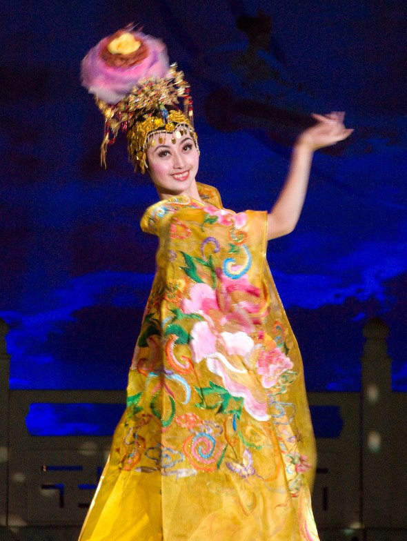 Elevate your stage presence with this stunning traditional Chinese classical dance costume, featuring a vibrant yellow fabric adorned with intricate phoenix and floral embroidery. The design includes spectacular extra-long water sleeves that create a fluid, ethereal effect perfect for expressive choreography and dramatic movements. Complete with an ornate golden headdress, this ensemble captures the regal elegance of ancient Chinese dynasties, making it ideal for cultural performances and professional dance recitals.