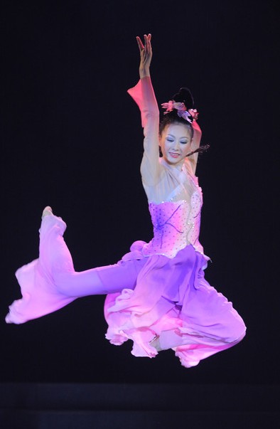 This stunning classical Chinese dance costume features a beautiful gradient transition from soft pink to deep purple, designed to captivate audiences on stage. Crafted from lightweight, flowing fabrics, the dress includes traditional long "water sleeves" that extend the dancer's movements and add dramatic flair to every gesture. The fitted bodice and floor-length skirt ensure freedom of movement while maintaining an elegant silhouette, perfect for folk dance competitions or cultural galas. Embodying the grace of traditional Chinese aesthetics, this outfit is ideal for performers seeking a professional look that combines heritage with modern stage presence.