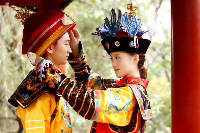 Step into history with this exquisite Traditional Chinese Qing Dynasty palace costume, designed to replicate the regal attire of an ancient empress or noble concubine. The ensemble features a vibrant red and yellow robe adorned with intricate dragon embroidery and wide, flowing sleeves that signify imperial status and elegance. Complete with a stunning, elaborate headdress featuring blue feather accents and dangling pearls, this outfit captures the authentic grandeur of the Manchu court style. Perfect for stage performances, cultural festivals, historical reenactments, or professional photography, this high-quality costume allows women to embody the grace of ancient Chinese royalty.