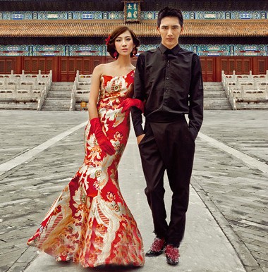 This stunning red and gold brocade Cheongsam features intricate floral embroidery and a glamorous mermaid silhouette that blends traditional heritage with modern elegance. Crafted for special occasions, this luxurious gown is perfect for Chinese weddings, tea ceremonies, or formal evening galas. The auspicious red color symbolizes joy and good fortune, making it a breathtaking choice for any bride celebrating her culture.