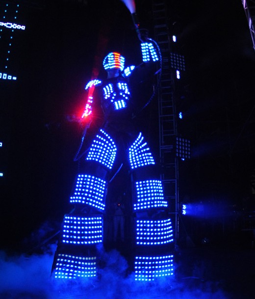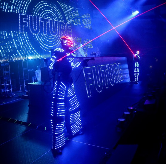 Futuristic LED Robot Costume with Laser Beams for Stage Performance Dance Show and Night Parties