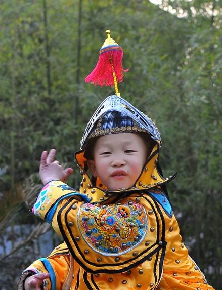 Immerse your child in the rich history of China with this exquisite Traditional Peking Opera General costume, featuring vibrant yellow fabric and intricate dragon embroidery. The ensemble includes a detailed armor-style tunic with a central protective mirror and decorative plating, paired with a matching helmet adorned with a striking red plume. Crafted with attention to authentic detail, this outfit is ideal for stage performances, cultural festivals, Halloween cosplay, or traditional holiday celebrations. Celebrate the artistry of ancient Chinese theater while ensuring your child stands out with this majestic and culturally significant attire.