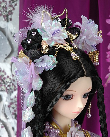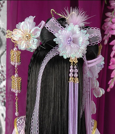 Elevate your traditional aesthetic with this exquisite ancient Chinese hair accessory set, featuring delicate lavender silk flowers and soft iridescent feathers. Intricate gold filigree frames the design while long, dangling pearl tassels add a luxurious, flowing movement perfect for Hanfu styling or detailed doll displays. This headpiece beautifully captures the elegance of classical Chinese culture, making it a stunning choice for cosplay, photography, or special cultural celebrations.