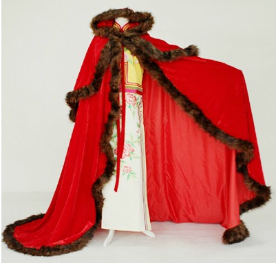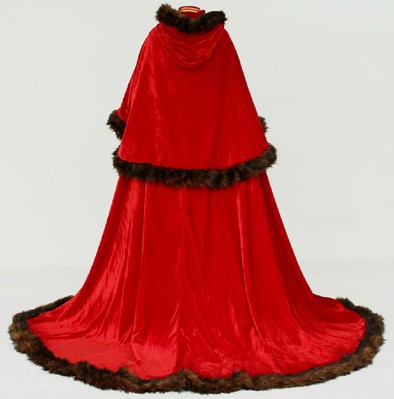 Crafted from rich, shimmering red velvet, this majestic floor-length cloak features plush brown faux fur trimming along the collar, edges, and inner lining. Designed for ultimate regal presence, it is the perfect attire for portraying a medieval king, queen, or noble in theater productions and Renaissance fairs. The heavy, luxurious drape ensures warmth and comfort, making it an ideal choice for Halloween costumes or Christmas character portrayals. Whether for stage performance or fantasy cosplay, this cape embodies traditional authority and timeless style.