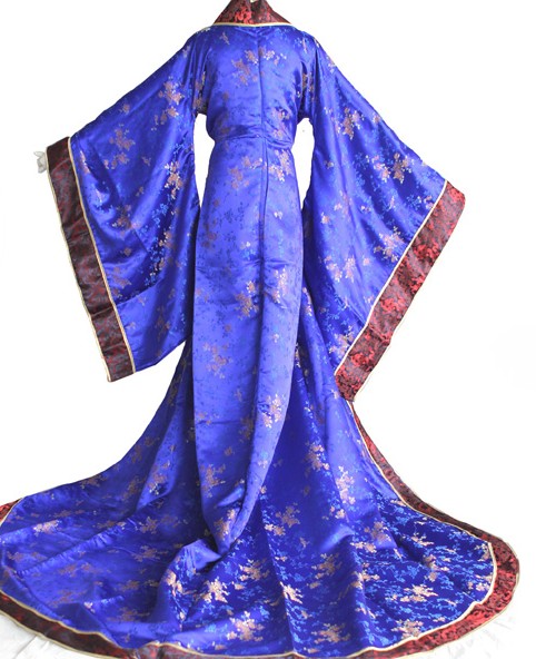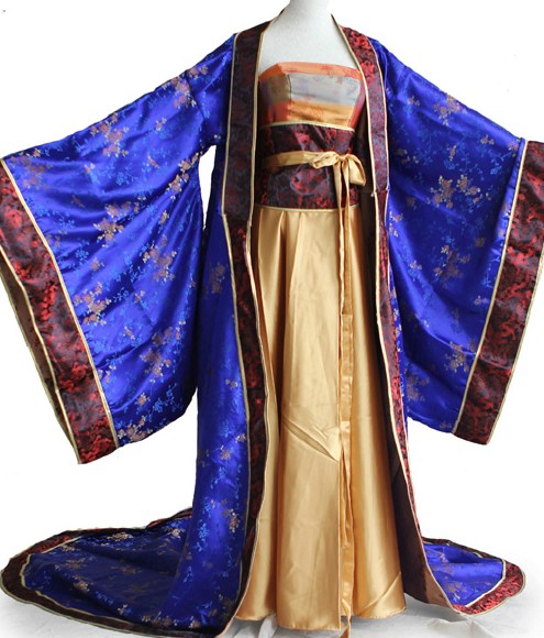 Step into the elegance of ancient China with this stunning Royal Blue Tang Dynasty Empress Hanfu costume. Crafted from luxurious, heavy fabrics, the dress features intricate gold floral embroidery and flowing wide sleeves that capture the grandeur of imperial palace life. Perfect for historical cosplay, cultural performances, or traditional photography, this outfit allows you to embody the grace and dignity of a high-ranking noblewoman. The ensemble includes a layered design with a majestic high waistline, honoring the sophisticated aesthetics of traditional Chinese culture.