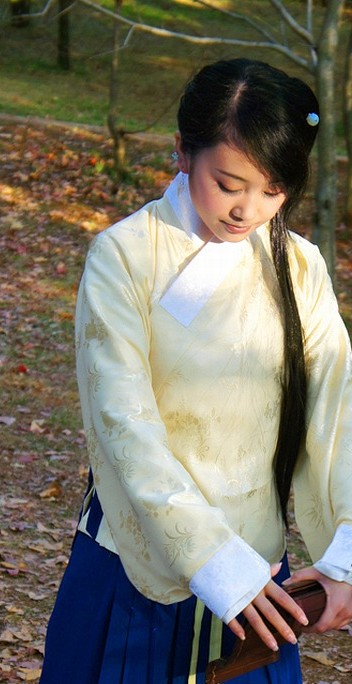 Embrace the elegance of ancient China with this stunning traditional Hanfu set, featuring a soft cream-colored cross-collar top paired with a flowing royal blue skirt. The skirt is beautifully adorned with intricate gold floral embroidery along the hem, adding a touch of regal sophistication to the ensemble. Crafted from breathable, high-quality fabrics, this outfit is perfect for cultural festivals, historical reenactments, or professional photography sessions in natural settings. Experience the grace of traditional Chinese culture while wearing this comfortable and authentic costume designed for modern women.