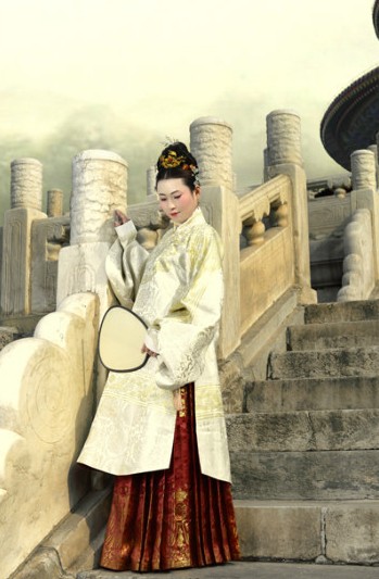 Step back in time with this exquisite Ming Dynasty Hanfu set, featuring a luxurious cream Pifeng coat paired with a majestic maroon Mamianqun skirt. Crafted from high-quality fabric with a subtle sheen, the ensemble showcases intricate gold embroidery along the hemlines and wide, flowing sleeves that embody ancient Chinese elegance. Perfect for traditional culture enthusiasts, this authentic costume is ideal for Hanfu gatherings, historical reenactments, photography sessions, or special ceremonial occasions. Embrace the grace of imperial history with this complete outfit that captures the sophisticated aesthetic of traditional Chinese aristocracy.