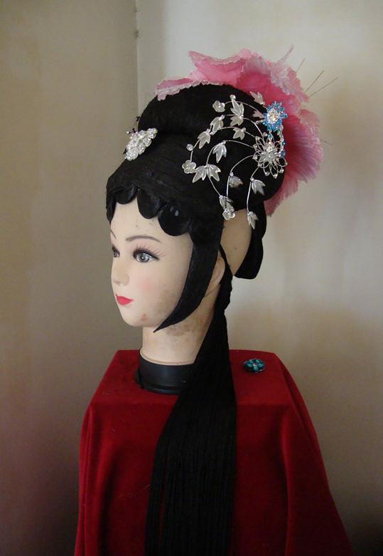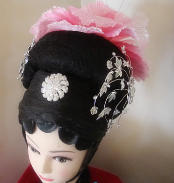 This exquisite traditional Chinese wig captures the elegance of the Qing Dynasty, featuring a voluminous black base adorned with intricate silver floral ornaments and soft pink feathers. Designed for authenticity, this headpiece is perfect for Peking Opera performances, historical reenactments, and traditional culture enthusiasts looking to embody a noble princess or "Gege." The detailed craftsmanship ensures a stunning visual impact, making it an essential accessory for any classical Chinese dance or theatrical production.