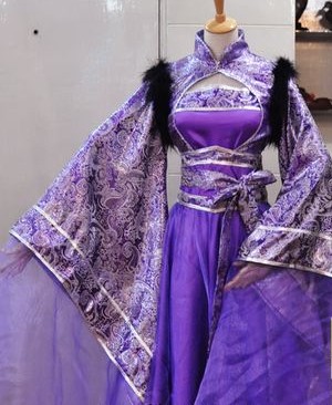 Immerse yourself in the elegance of ancient China with this stunning purple Hanfu, featuring intricate silver brocade patterns and dramatic wide sleeves. Designed with a high mandarin collar and luxurious black fur trim at the shoulders, this costume exudes nobility and grace, making it perfect for stage performances and historical reenactments. Crafted from high-quality, flowing fabrics, it is an ideal choice for cosplay enthusiasts, traditional cultural festivals, and artistic photography. Embrace the timeless beauty of Chinese heritage with this exquisite garment that seamlessly blends traditional craftsmanship with fantasy-inspired aesthetics.
