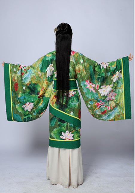 This exquisite traditional Chinese Hanfu features a stunning green robe adorned with vibrant lotus flower prints, capturing the elegance of the Ming Dynasty. Crafted with flowing wide sleeves and a classic cross-collar design, the outfit is paired with a graceful cream-colored pleated skirt for a complete historical look. Perfect for cultural festivals, tea ceremonies, or historical reenactments, this clothing allows wearers to immerse themselves in the beauty of ancient Chinese fashion.