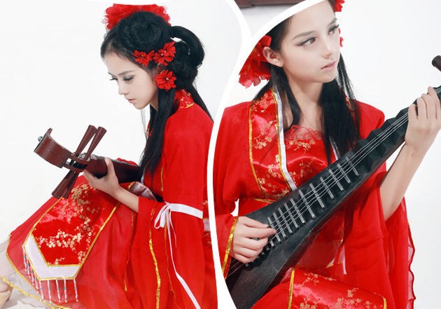 Embody the elegance of ancient China with this stunning red Hanfu wedding dress, featuring intricate gold embroidery that symbolizes prosperity and joy. Crafted from flowing fabrics, this costume boasts wide sleeves and a graceful silhouette perfect for stage performances, traditional ceremonies, or cosplay. The outfit includes a detailed bodice and a layered skirt, offering an authentic look for cultural festivals or bridal photography. Designed to celebrate traditional Chinese aesthetics, this attire allows you to experience the timeless beauty of historic fashion.