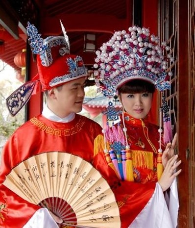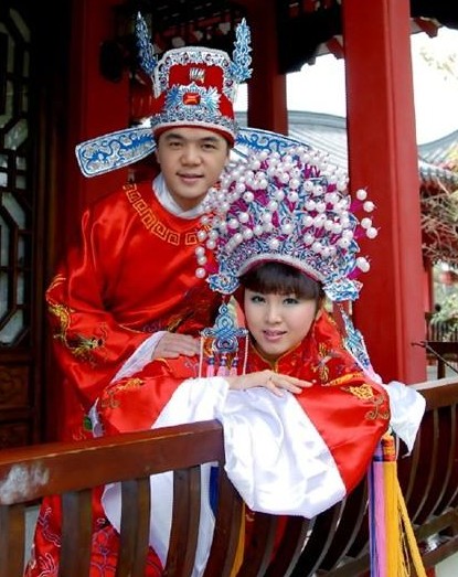 Celebrate your special day with this authentic traditional Chinese wedding costume set, featuring vibrant red robes that symbolize joy and prosperity for both bride and groom. The ensemble includes an exquisite headdress adorned with intricate beadwork and flowing tassels for the bride, paired with a distinguished embroidered hat for the groom. Crafted with attention to historical detail, this attire is perfect for traditional wedding ceremonies, cultural performances, or professional photography shoots. Embrace the elegance of ancient Chinese heritage with this complete outfit designed to make a stunning impression.