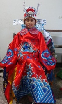 This vibrant red traditional Chinese opera costume features intricate dragon embroidery, symbolizing power and nobility in classic Peking Opera culture. Designed for young performers, the outfit includes a flowing robe with detailed blue wave patterns at the hem and a matching elaborate headdress. Crafted from durable, high-quality fabric, it is perfect for stage performances, cultural festivals, and educational school plays. The authentic design allows children to immerse themselves in the grandeur of ancient Chinese theatrical arts.