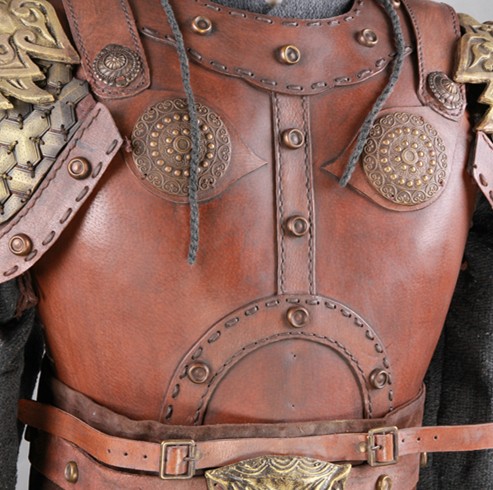 This exquisite full-body armor set replicates the majestic style of ancient Chinese generals, featuring a distinctive hexagonal "mountain pattern" scale design known as Shan Wen Kai. Crafted with durable leather and intricately linked metal-toned scales, the ensemble includes a detailed helmet with a crimson tassel, protective shoulder guards, and a layered skirt for authentic movement. Ideal for historical reenactments, stage performances, and high-quality cosplay, this suit captures the grandeur of traditional Chinese martial culture and craftsmanship.