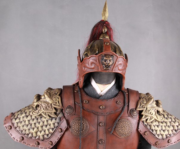 Traditional Chinese Ming Dynasty General Armor Costume Full Set Leather Scale Helmet for Men Cosplay