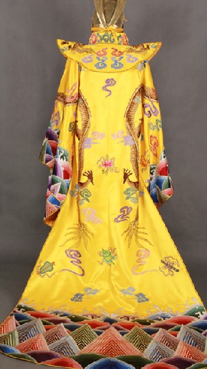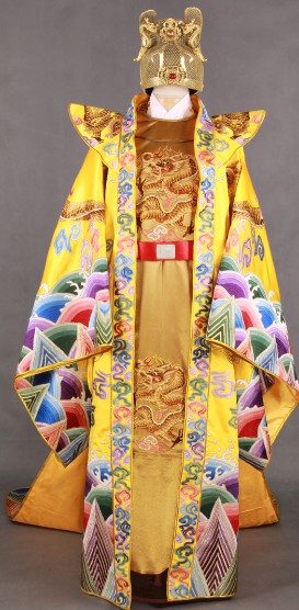 This exquisite traditional Chinese Taoist priest robe features magnificent gold dragon embroidery and intricate cloud patterns on premium yellow fabric, symbolizing supreme spiritual authority. The ensemble includes a flowing outer robe with detailed mountain and wave hems, a matching inner garment, a red sash, and an ornate ceremonial crown. Perfect for Taoist rituals, Chinese opera performances, or cultural exhibitions, this costume allows wearers to embody the grandeur of ancient Chinese religious heritage.