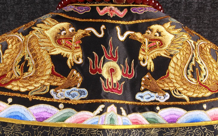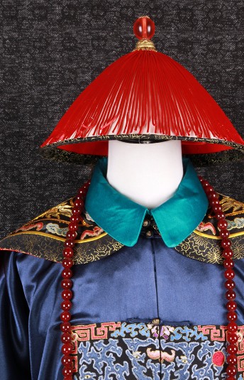 Immerse yourself in imperial history with this authentic Qing Dynasty official costume, crafted from lustrous blue silk and featuring a detailed embroidered rank badge (Buzi) on the chest. The ensemble includes traditional Manchu elements such as horse-hoof cuffs, a colorful "water and cliff" hem pattern, a red official's hat, and a long court bead necklace. Ideal for theater productions, historical cosplay, or cultural displays, this majestic attire accurately reflects the sartorial elegance and status symbols of ancient Chinese civil officials.
