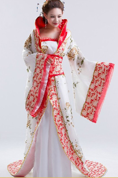 This elegant traditional Chinese Hanfu costume features a stunning white and red color palette adorned with intricate floral embroidery. The flowing wide sleeves and long trailing skirt create a graceful silhouette perfect for embodying an ancient princess or celestial fairy. Crafted from high-quality, breathable fabrics, it offers both comfort and a luxurious feel suitable for stage performances or photography. Ideal for cultural festivals, cosplay events, or historical reenactments, this attire celebrates the timeless beauty of ancient Chinese fashion.