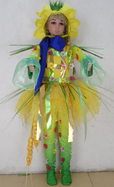 Bring the brightness of summer to the stage with this vibrant children's sunflower dance costume, perfect for group choreography and school events. Designed for harvest festivals and cultural performances, the outfit features a cheerful yellow dress with green accents, flowing sleeves, and a large, eye-catching flower headpiece. The ensemble includes matching green leggings with floral details that enhance movement and add a playful touch to the look. Ideal for celebrating themes of nature and growth, this durable costume ensures every young performer shines under the spotlight.