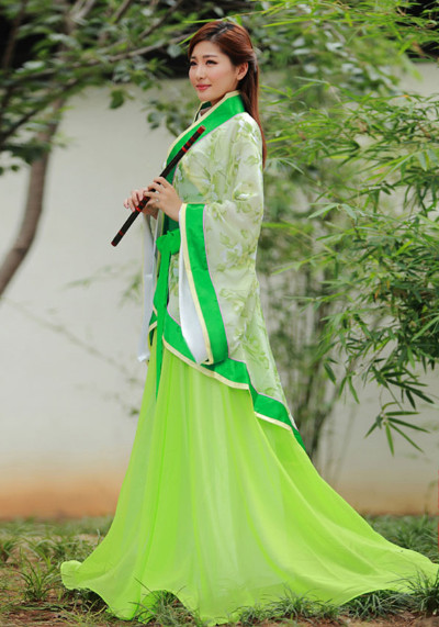 This elegant green Hanfu features a traditional cross-collar design with wide, flowing sleeves perfect for capturing the grace of ancient Chinese royalty. Crafted from lightweight, breathable fabric, the long skirt moves beautifully, making it ideal for traditional dance performances or artistic photography. Whether you are attending a cultural festival, cosplaying as a Tang Dynasty princess, or simply appreciating historical fashion, this outfit embodies timeless Oriental beauty.