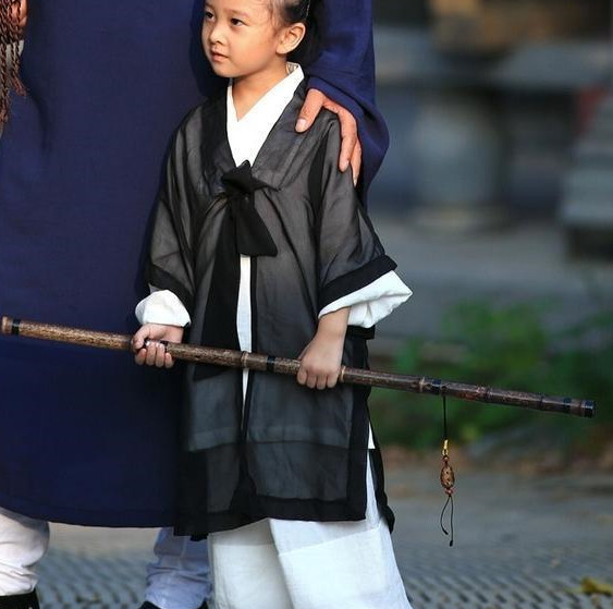 Dress your little one in this authentic black Hanfu, designed to emulate the dignified attire of ancient Chinese scholars or Taoist practitioners. Crafted from breathable, high-quality fabric, this traditional robe features a classic cross-collar design and flowing sleeves that ensure comfort for active children. Perfect for cultural festivals, traditional photography sessions, or stage performances, this costume allows kids to immerse themselves in the elegance of Chinese history. The ensemble captures a complete historical look, ideal for introducing children to the beauty of traditional etiquette and clothing.