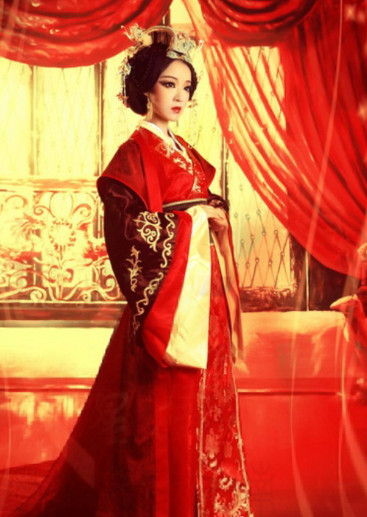 Experience the grandeur of ancient China with this exquisite red Hanfu, designed to emulate the regal attire of a palace empress or noble lady. Featuring a deep red hue symbolizing luck and joy, the garment is crafted with flowing fabrics and intricate golden patterns along the wide sleeves and hem. Ideal for traditional weddings, stage performances, or historical cosplay, this outfit allows you to embody the timeless elegance and rich cultural heritage of classical Chinese fashion.