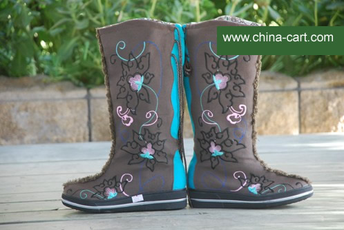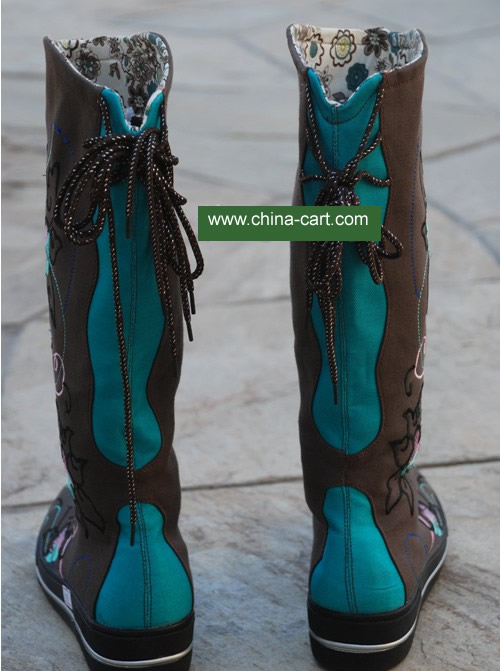 Women's Brown and Teal Western Winter Boots with Embroidered Heart Cross Design Side Lace Casual Snow Boot