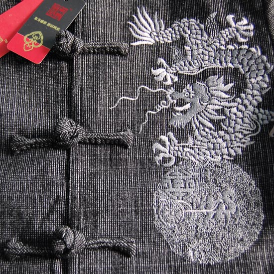 Embrace traditional elegance with this men's Chinese Tang suit jacket, featuring intricate dragon embroidery that symbolizes power and good fortune. Crafted from a textured, breathable fabric blend, it offers comfort and style with classic frog buttons and a stand-up Mandarin collar. Perfect for casual outings or cultural celebrations, this jacket serves as a sophisticated tribute to Eastern heritage. The practical design includes front pockets, making it an ideal gift for fathers or grandfathers who appreciate timeless craftsmanship.