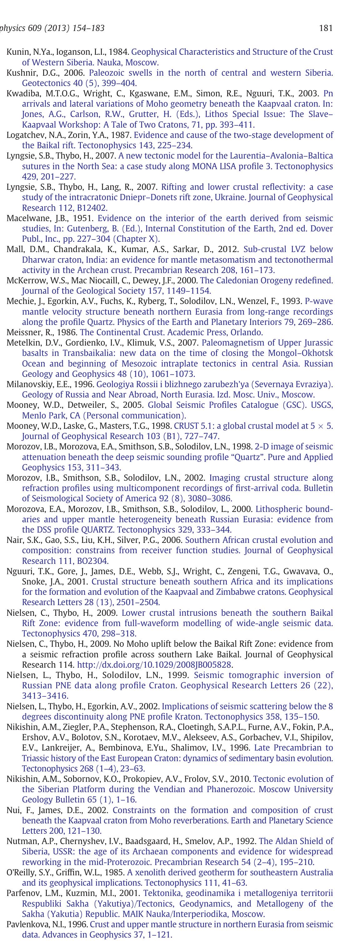 dimensional velocity structure beneath northern Eurasia derived from the Thybo, H., Ross, A.R., Egorkin, A.V., 2003. Explosion seismic reflections from the Earth's