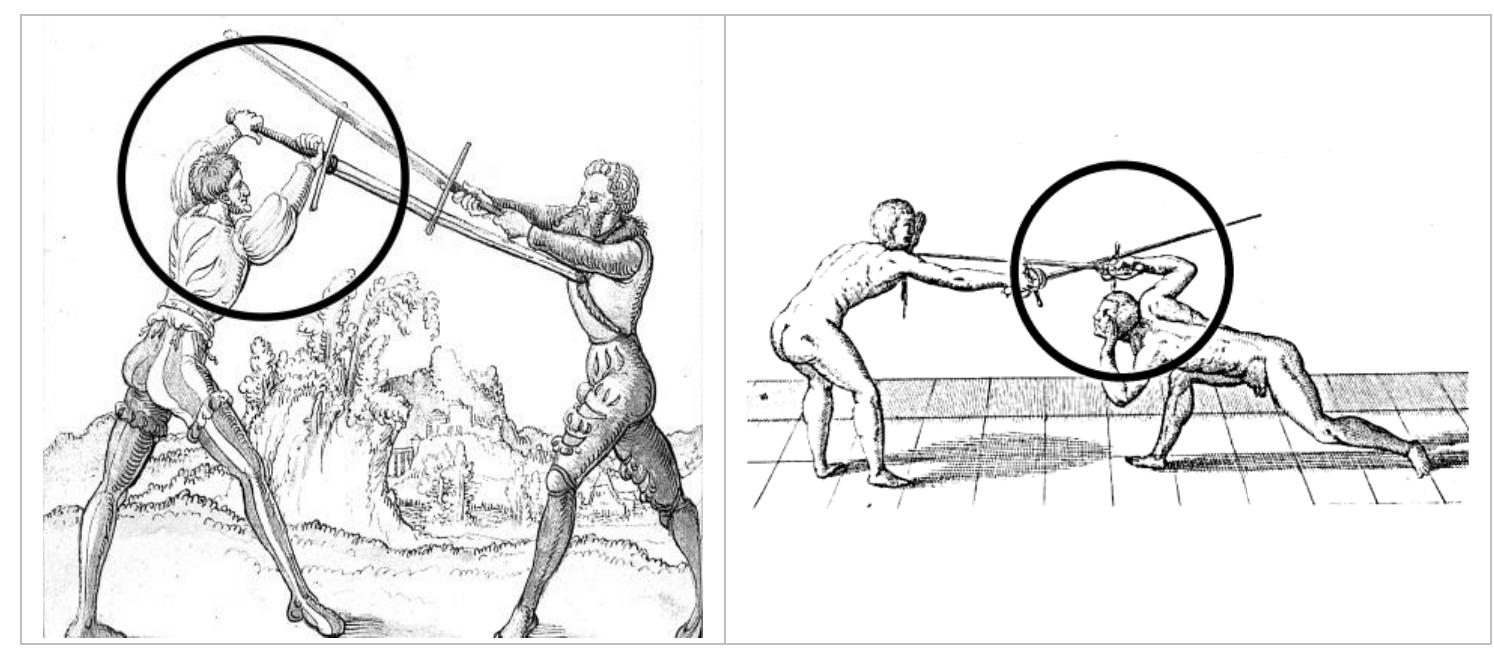 [En] This article is a partial transcript of a live demonstration of armed combat, presented during the colloquium "Portraits and representations of the former Netherlands" held at the University of Artois in November 2018. Its aim is to illustrate a quintessential practice of the Renaissance, yet often overlooked in its intricacies: fencing, "the noble science of swordplay". It seeks to briefly outline and concretely demonstrate which gestures, movements, and fencing techniques could have been practiced during public gatherings of fencers in the 16th century. This presentation complements Cyril Dermineur's exploration of the institutional and functional aspects of swordplay guilds.