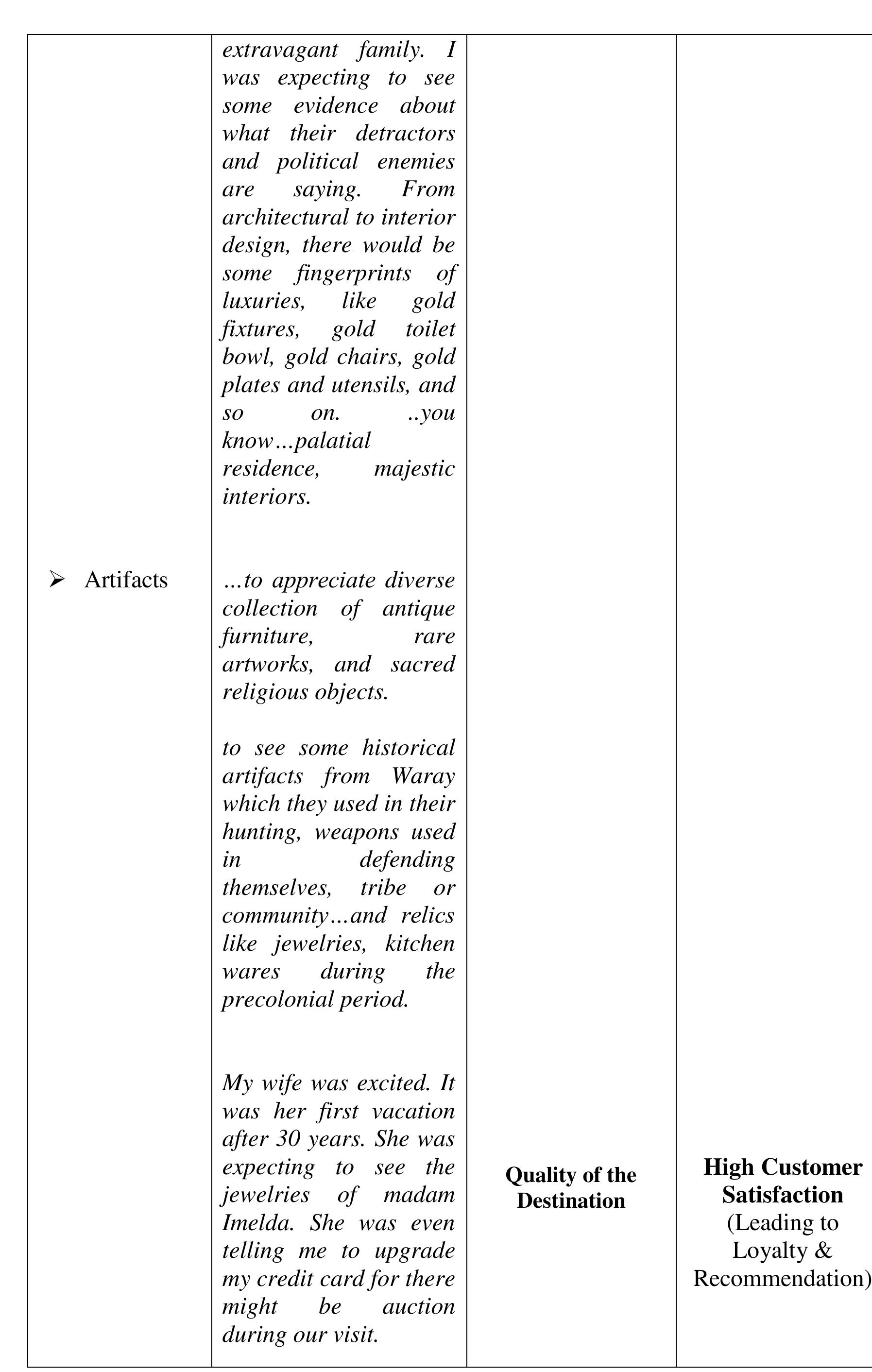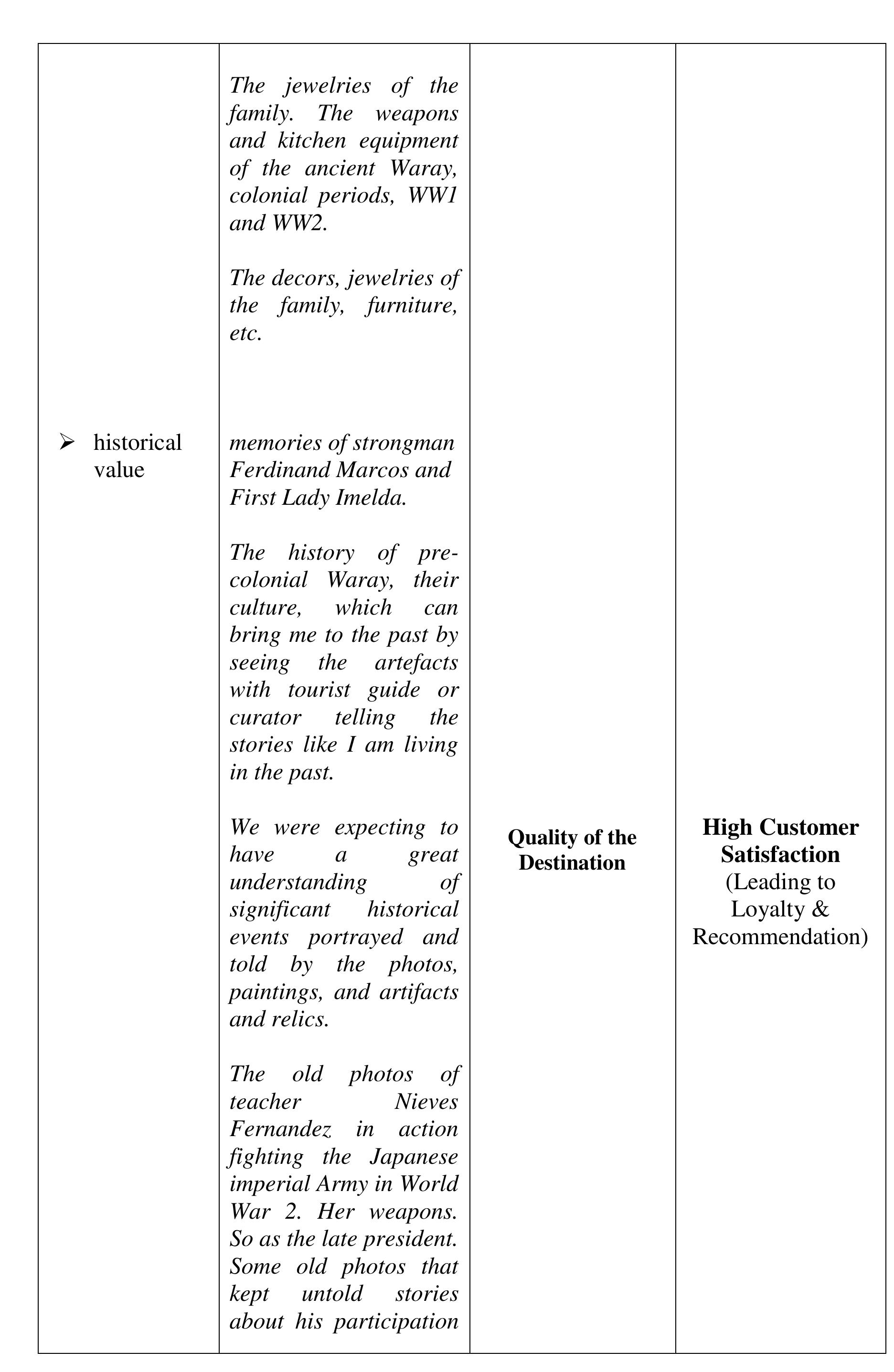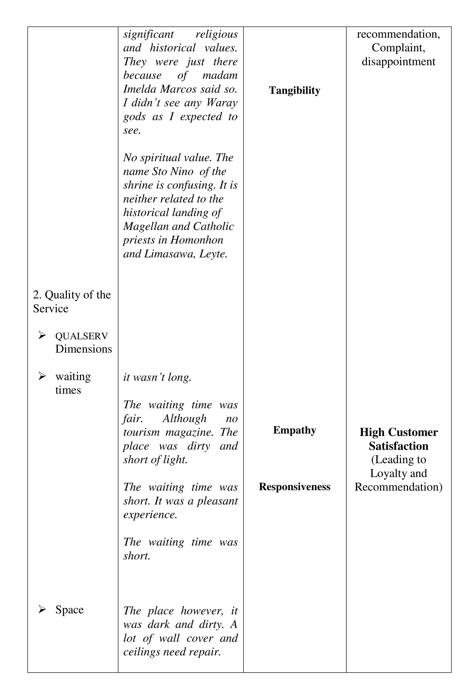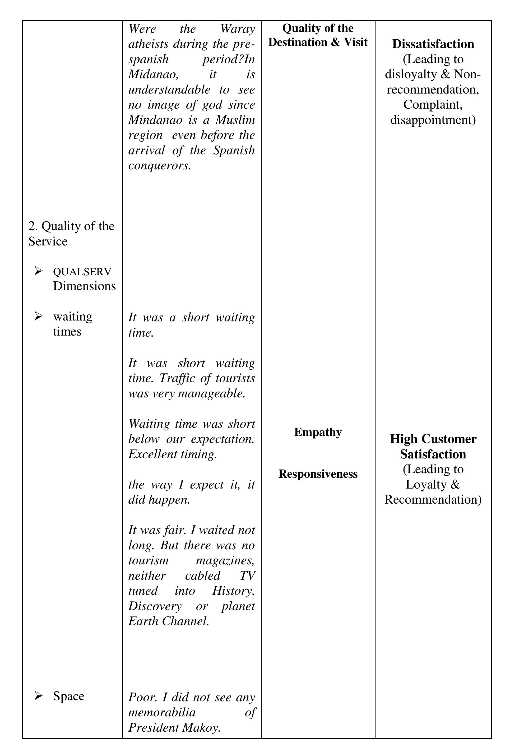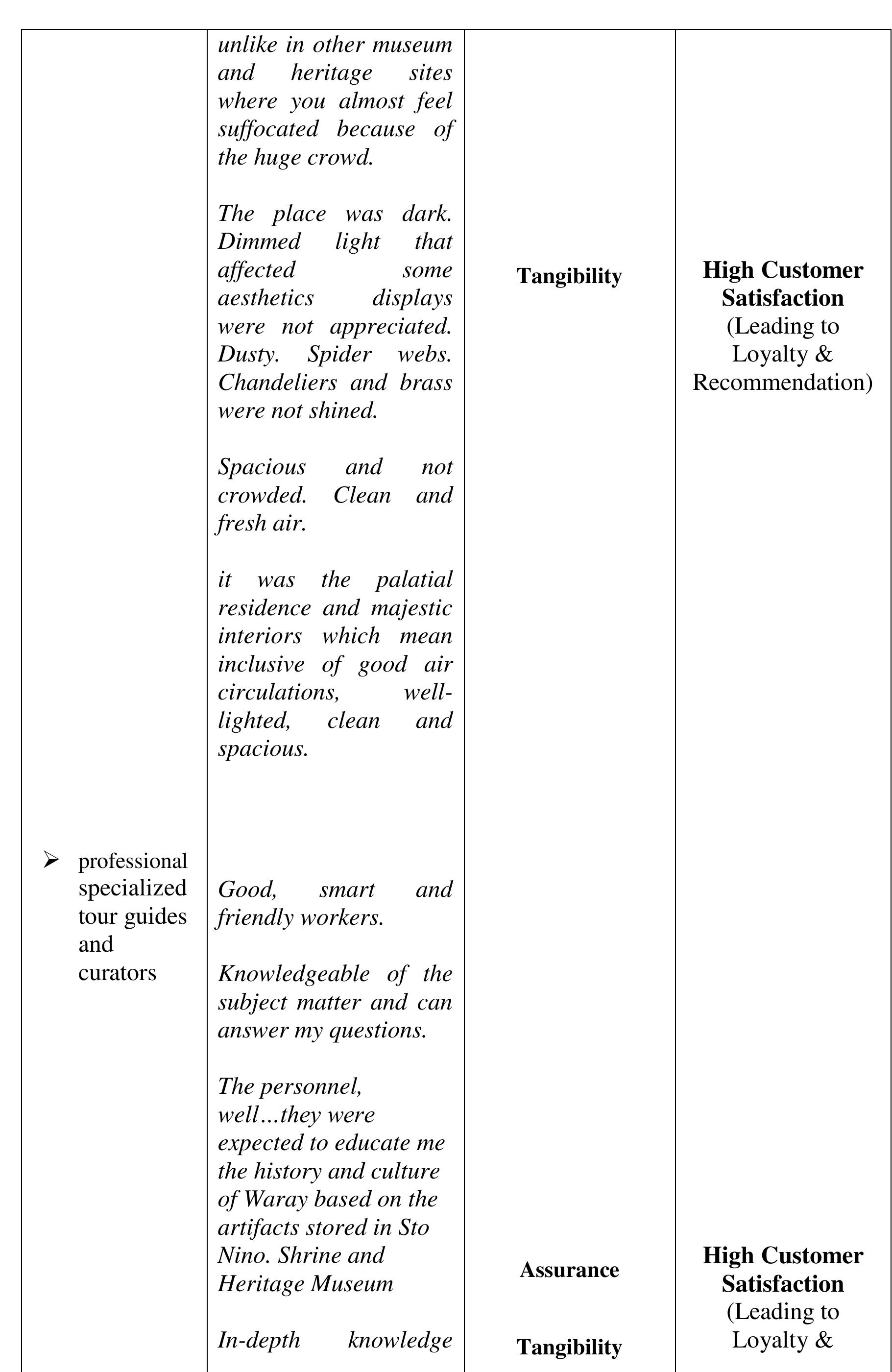 The aim of the study was to determine the perceived quality of the destination, visit and service... more The aim of the study was to determine the perceived quality of the destination, visit and service, and perceived experience of the visitors of the Sto. Nino Shrine & Heritage Museum that affect the visitors' satisfaction, loyalty and word-of-mouth recommendations to their friends and relatives critical to the growing numbers of visitors annually. The investigation was done within the phenomenological-case study research design. The findings of the investigation suggest that the perceived experience and perceived quality of the destination, visit and service in comparison to expectations developed the negative feelings described as "Totally Unsatisfied." The perceived experience or performance of the destination and service of Sto Nino Shrine and Heritage Museum, failed to deliver the expectations. We compared the visitors' expectations as performance standards; and the money spent (perceived value), with the perceived experience and perceived quality of the actual performance of the destination and service to describe the gap between the expected and perceived experienced quality. The structural description of visitors' feelings or emotional satisfaction, affected or developed by the expectation-performance gap, is "Dissatisfied" feelings which lead to disloyalty and non-recommendation of the destination and service. The feelings or satisfaction are affected by the perceived quality and experience. Each component of the perceived value is described as "Dissatisfied" except the Empathy-"waiting time", Price and Cost-components of perceived value described as "Satisfactory" which suggests that the perceived value is not affected by perceived quality, perceived experience and feelings or satisfaction about expectation-experience gap. Several literature and evidences support the findings of the study. In conclusion, the decreasing number of tourists visiting the Sto Nino Shrine and Heritage Museum is traced from the feelings or satisfaction of the visitors, described as "Totally Unsatisfied," feelings developed from perceived experience and perceived quality of the destination, visit and service in textural form. Further concluded, the perceived value is not a factor to-neither can be affected by perceived quality of destination, visit and service, perceived experience and visitors' feelings or satisfaction and loyalty.