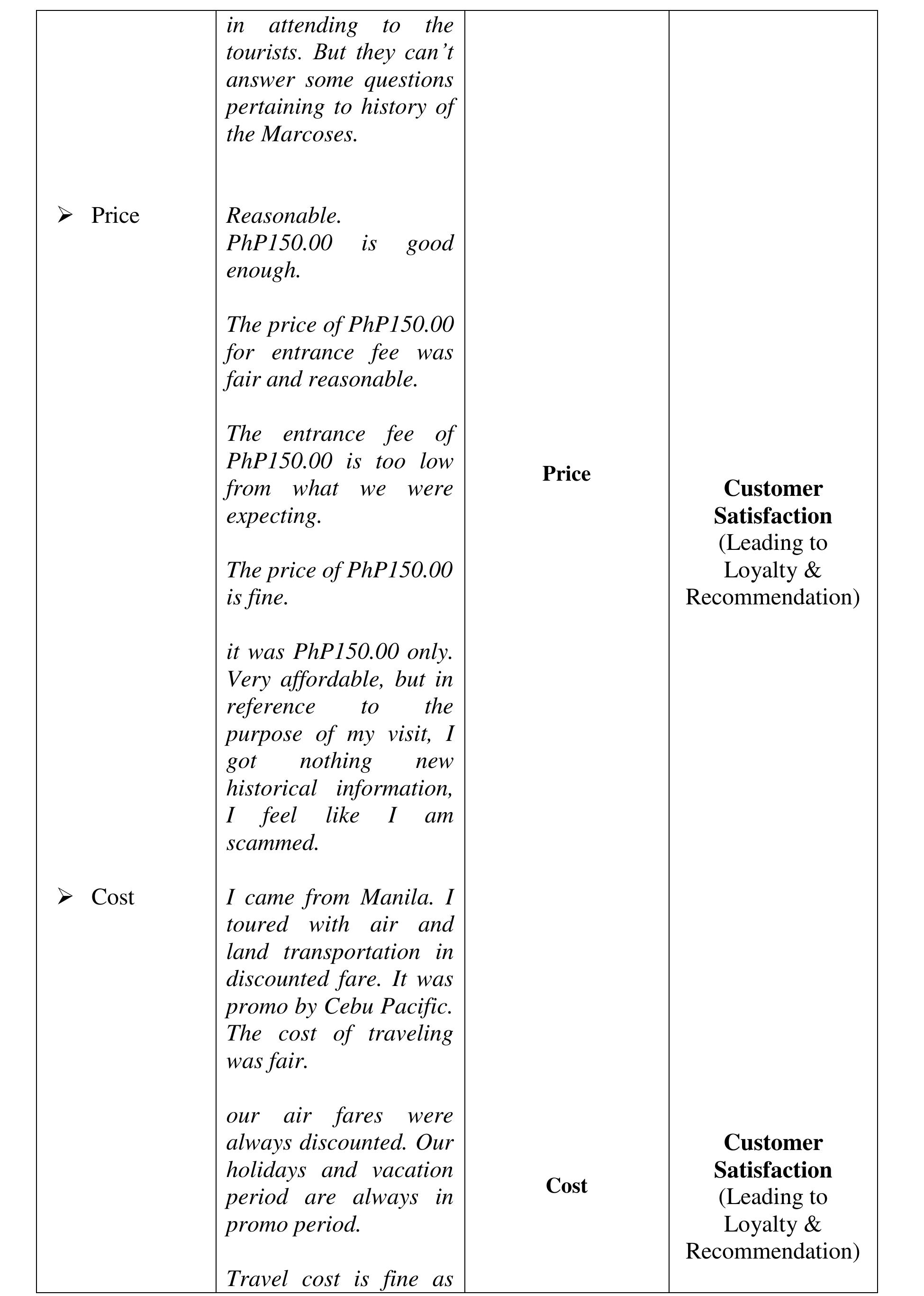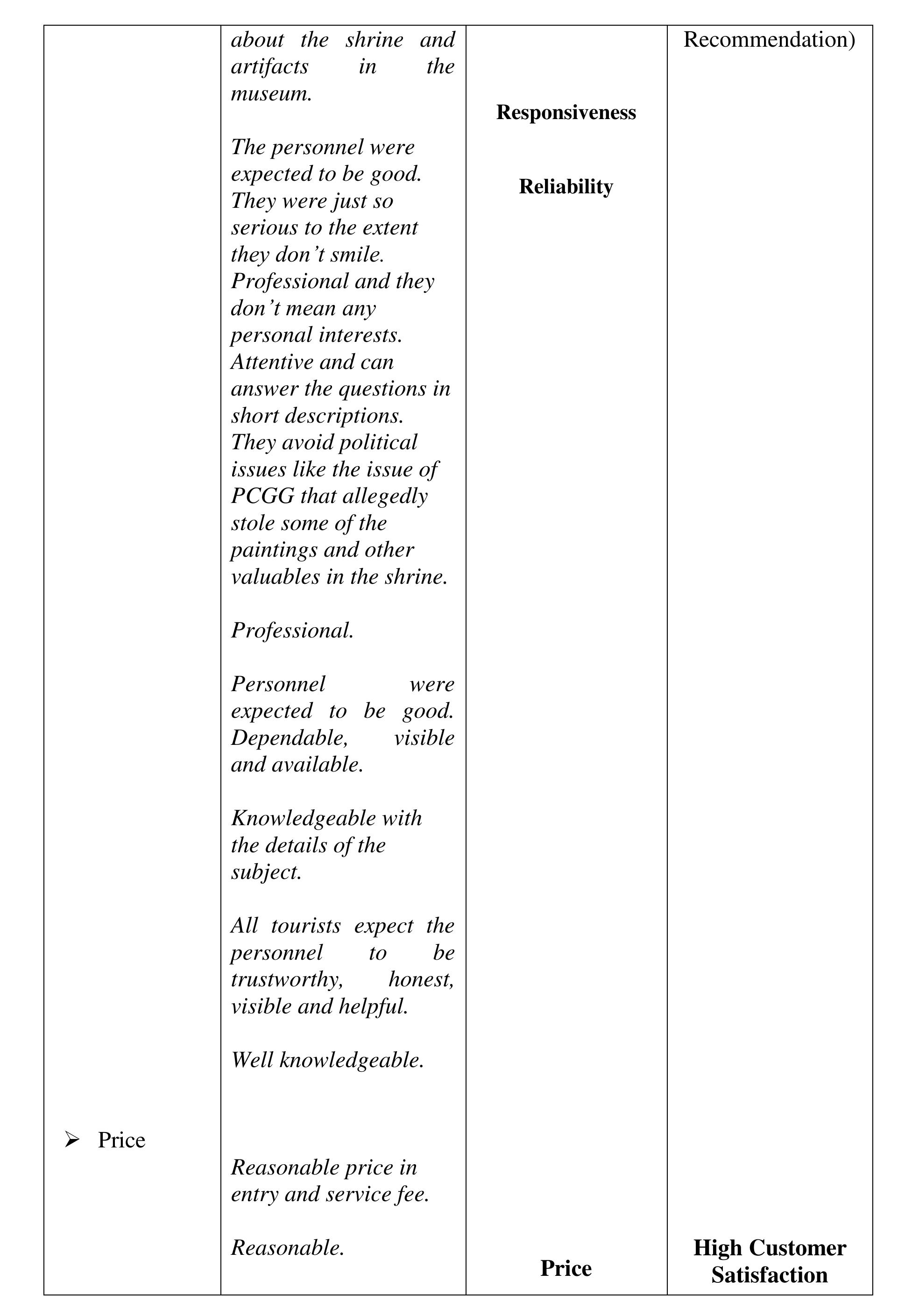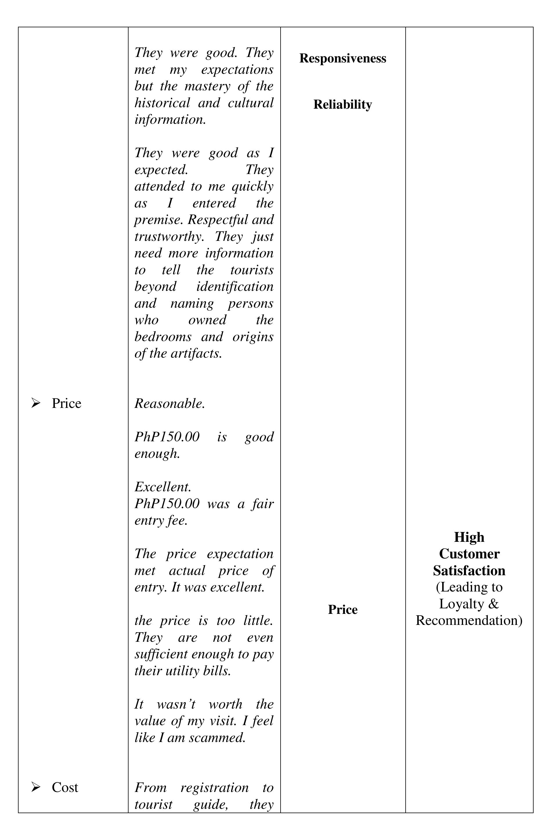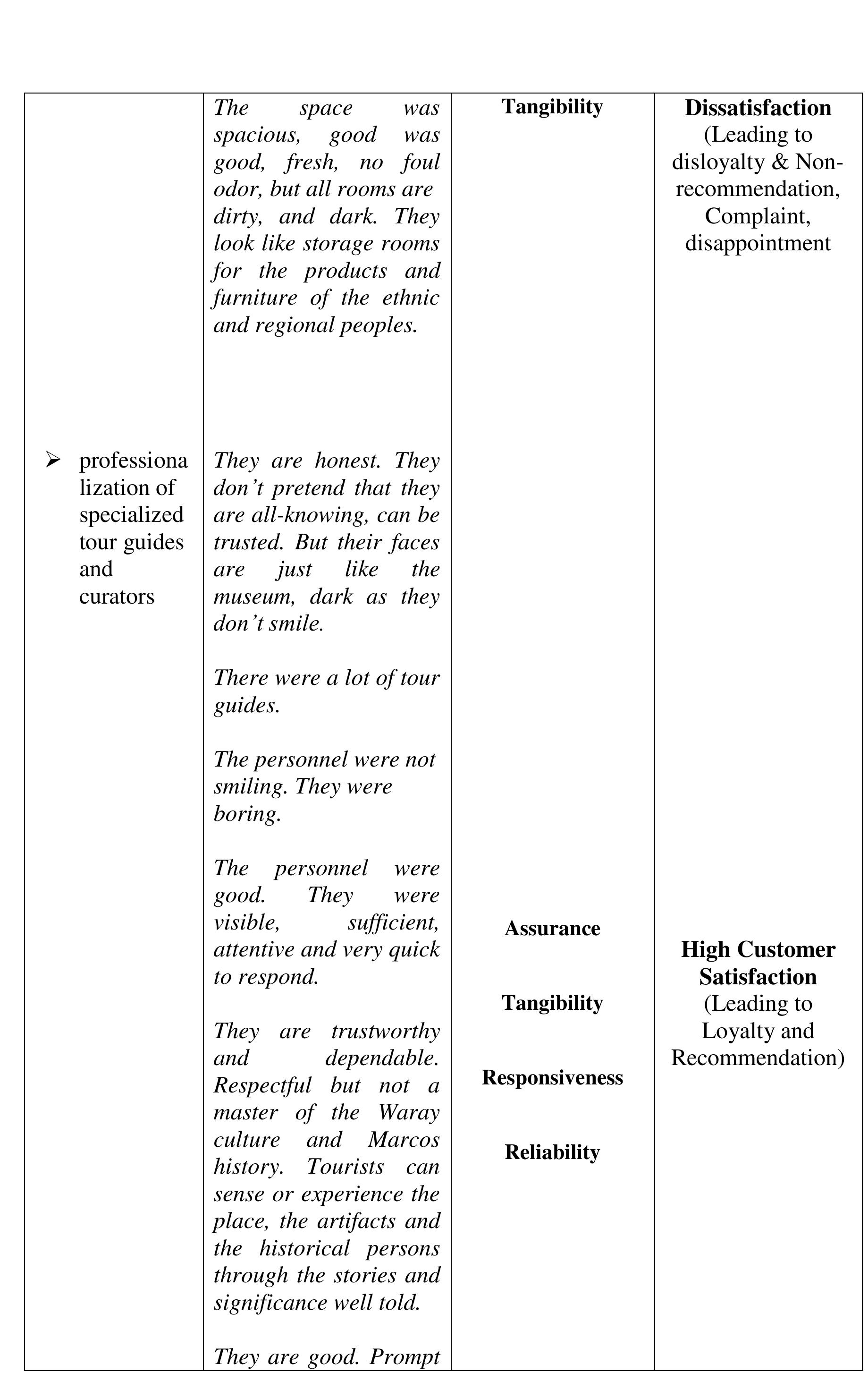 The aim of the study was to determine the perceived quality of the destination, visit and service... more The aim of the study was to determine the perceived quality of the destination, visit and service, and perceived experience of the visitors of the Sto. Nino Shrine & Heritage Museum that affect the visitors' satisfaction, loyalty and word-of-mouth recommendations to their friends and relatives critical to the growing numbers of visitors annually. The investigation was done within the phenomenological-case study research design. The findings of the investigation suggest that the perceived experience and perceived quality of the destination, visit and service in comparison to expectations developed the negative feelings described as "Totally Unsatisfied." The perceived experience or performance of the destination and service of Sto Nino Shrine and Heritage Museum, failed to deliver the expectations. We compared the visitors' expectations as performance standards; and the money spent (perceived value), with the perceived experience and perceived quality of the actual performance of the destination and service to describe the gap between the expected and perceived experienced quality. The structural description of visitors' feelings or emotional satisfaction, affected or developed by the expectation-performance gap, is "Dissatisfied" feelings which lead to disloyalty and non-recommendation of the destination and service. The feelings or satisfaction are affected by the perceived quality and experience. Each component of the perceived value is described as "Dissatisfied" except the Empathy-"waiting time", Price and Cost-components of perceived value described as "Satisfactory" which suggests that the perceived value is not affected by perceived quality, perceived experience and feelings or satisfaction about expectation-experience gap. Several literature and evidences support the findings of the study. In conclusion, the decreasing number of tourists visiting the Sto Nino Shrine and Heritage Museum is traced from the feelings or satisfaction of the visitors, described as "Totally Unsatisfied," feelings developed from perceived experience and perceived quality of the destination, visit and service in textural form. Further concluded, the perceived value is not a factor to-neither can be affected by perceived quality of destination, visit and service, perceived experience and visitors' feelings or satisfaction and loyalty.