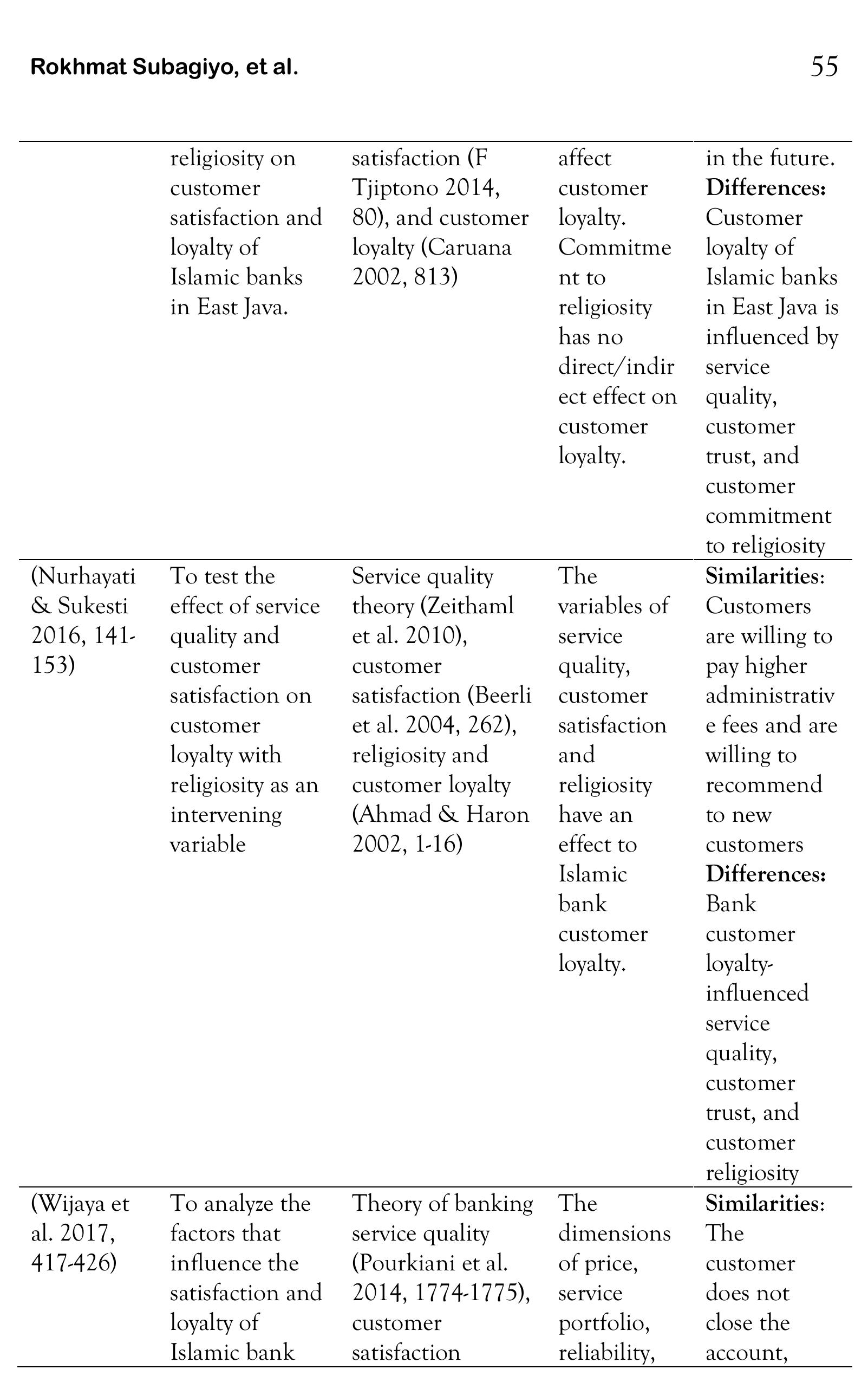 This paper aims to analyze customer loyalty to Islamic banks and conventional banks through varia... more This paper aims to analyze customer loyalty to Islamic banks and conventional banks through variables studied from previous research. This study used a qualitative approach to research literature, with data collected from reputable international journal articles indexed Q3 to Q1 and nationally accredited Sinta 3 to Sinta 2. This study examines 55 selected articles about customer loyalty from 1998-2019. The analysis results show that the independent variables, moderating variables, and intervening variables in determining customer loyalty to Islamic banks and conventional banks overlap (have similarities).