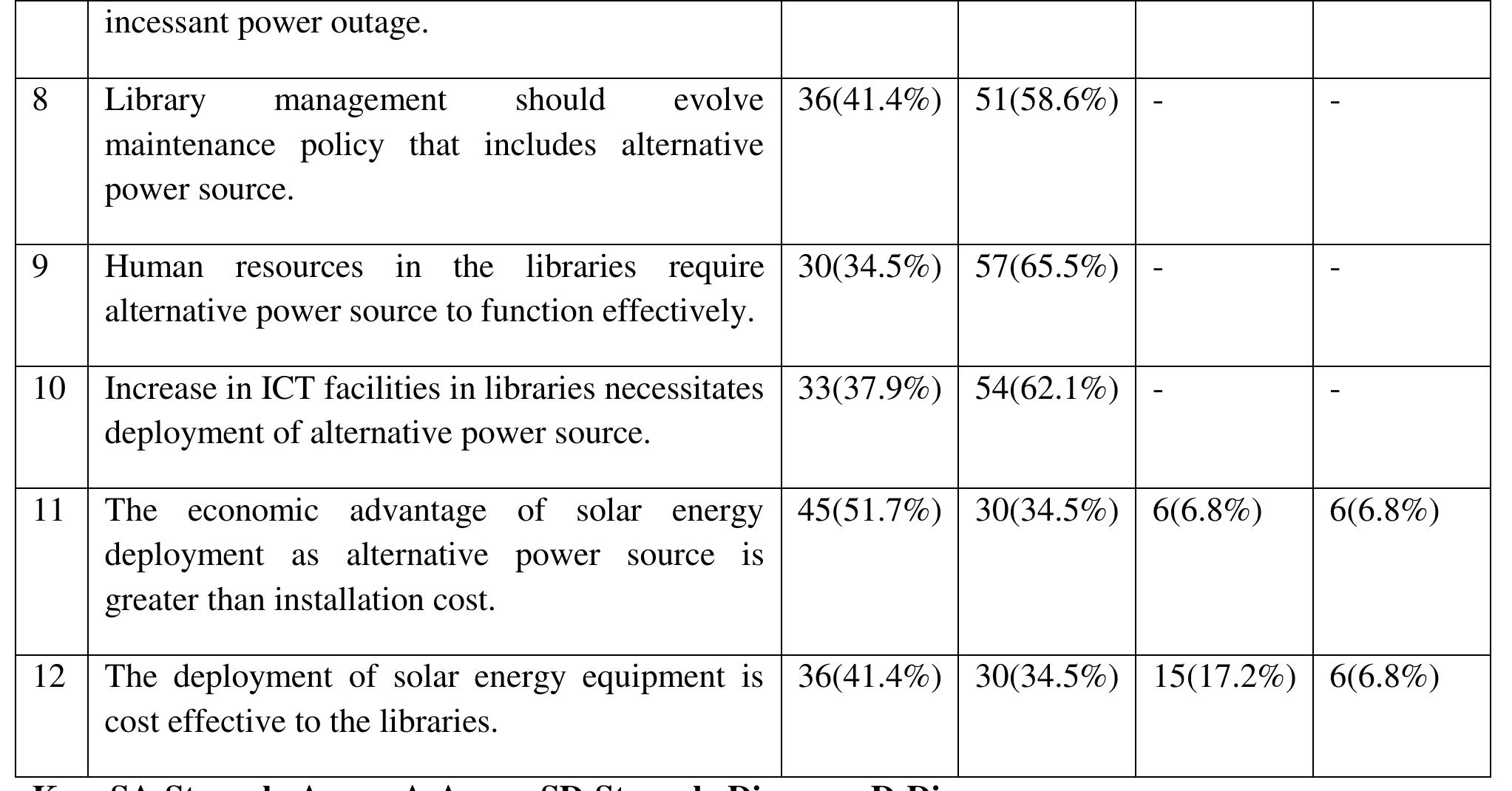 One of the major hindrances to the penetration of information and communication technology (ICT) ... more One of the major hindrances to the penetration of information and communication technology (ICT) devices in underserved and unserved areas in the developing nations is the absence and inadequacy of electricity to power technological devices. Inadequate supply from the national grid, land and water pollution from oil spillage in the oil producing communities among other factors have led Nigeria and indeed the world to look for alternative power supply such as solar energy. Unfortunately, utilization and development of solar energy is rising in other parts of the world but encountered with low pace of development and utilization in Nigeria. This paper reports a survey carried out to investigate the awareness and use of solar energy as alternative power source for ICT facilities in Nigerian library and information centres. Descriptive research design using survey method was adopted for this study. Questionnaire was designed and used as survey instrument. The population for this study i...