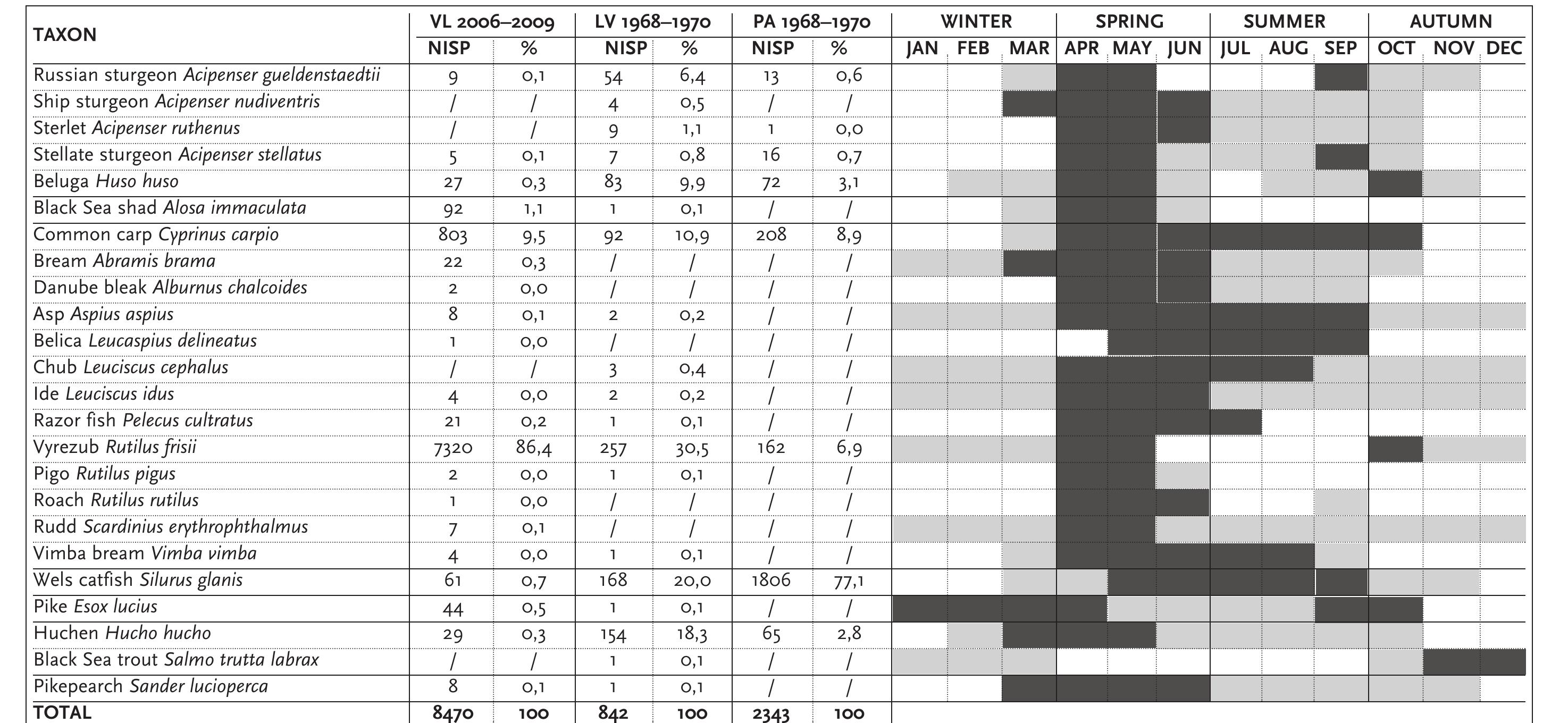 were occupied seasonally or all year round by looking at animal skeletal remains. The hunting seasons of most important game animals have been determined on the basis of antler and teeth growth, supplemented by looking into the presence of migratory fish and birds. The patterns of food resource exploitation seem to indicate year-round occupation of the settlements, and suggest that a significant degree of sedentism existed in the Danube Gorges prior to, and independently of, the adoption of animal and plant husbandry.