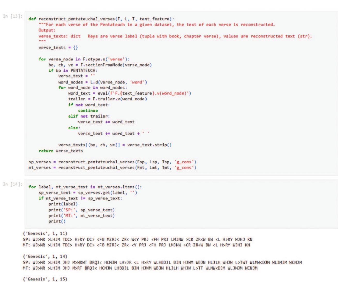 This article presents a dataset of the text of the Samaritan Pentateuch with word-level linguisti... more This article presents a dataset of the text of the Samaritan Pentateuch with word-level linguistic annotations. This dataset is based on a transcription generally taken from manuscript Dublin, Chester Beatty Library 751 (Genesis 1:1–Deuteronomy 32:36) and supplemented from manuscript Nablus (Kiryat Luza), Samaritan Synagogue, Garizim 1, where the former manuscript has not preserved the text (Deuteronomy 32:36b–34:10). The dataset is a Text-Fabric dataset. Text-Fabric is a Python package for processing annotated text corpora, which means that the dataset comes with an app, where the text can be inspected and queried using the annotations. It is also easy to perform textual and linguistic research using Python scripts and to make comparisons with other relevant textual datasets with the same annotation conventions. This is an open access article distributed under the terms of the CC BY 4.0 license.