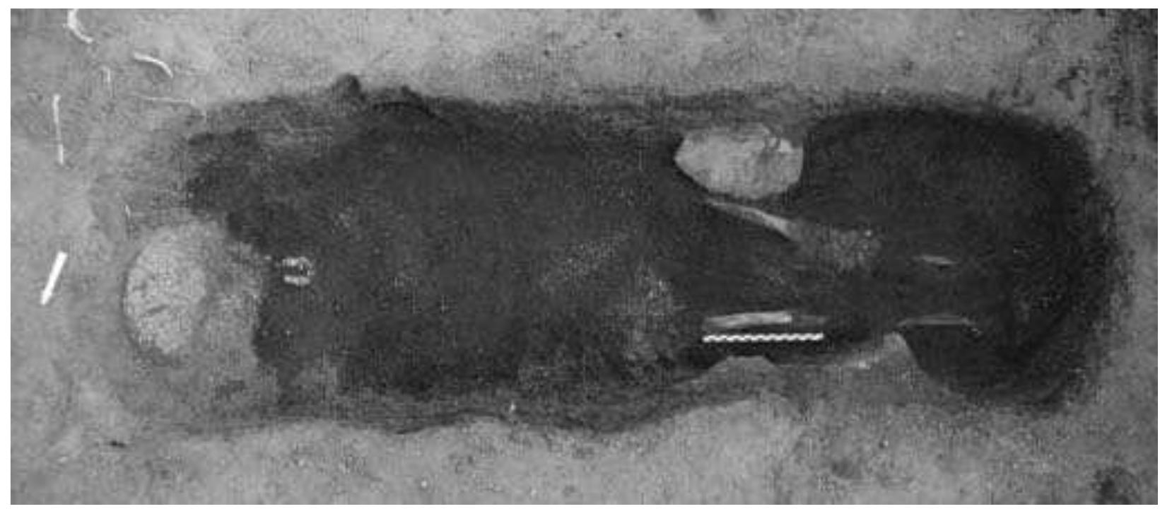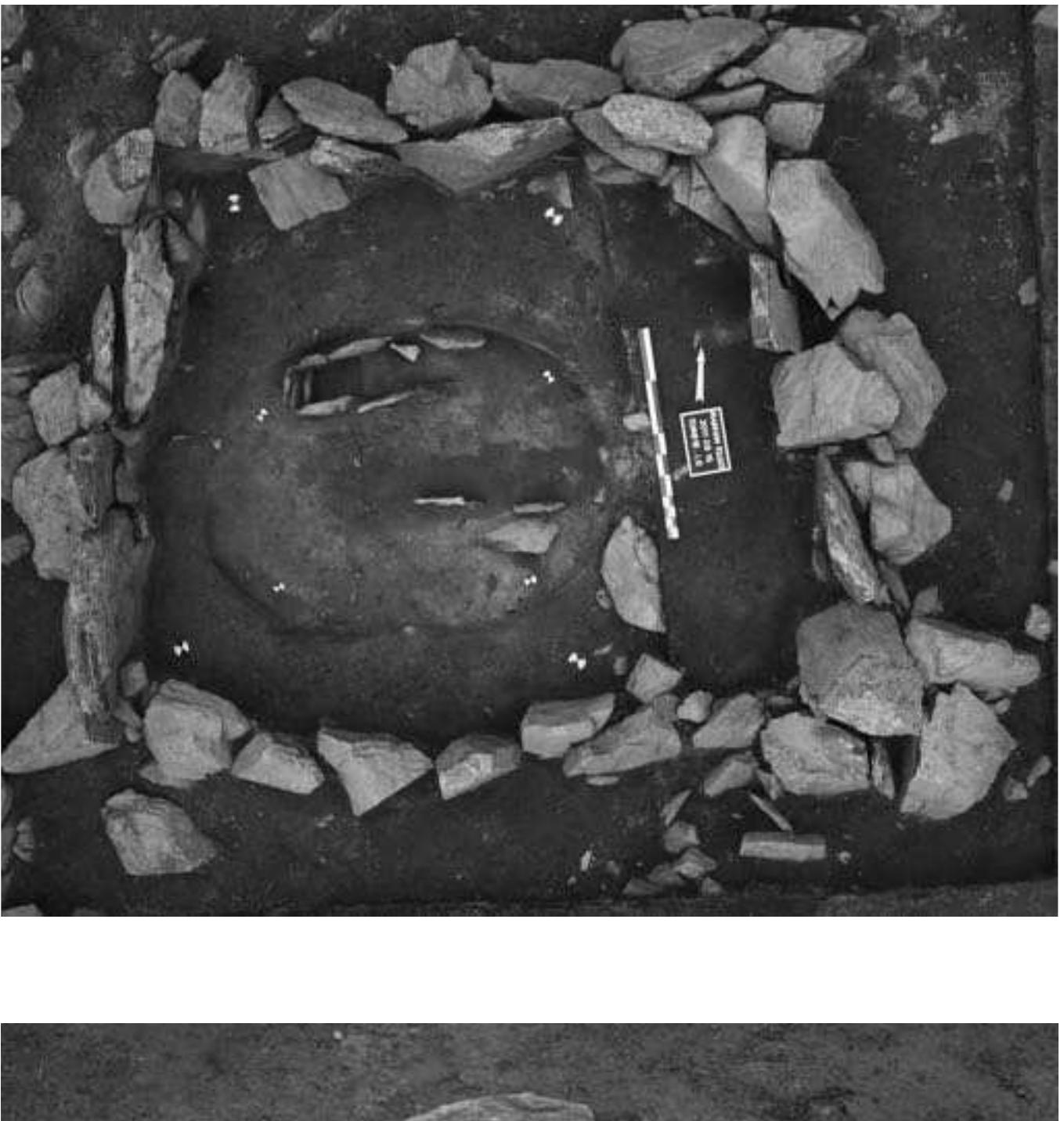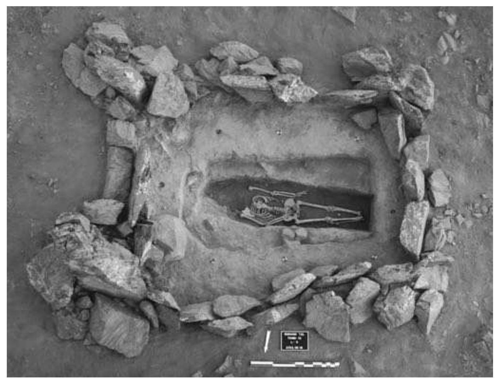 The density and variety of structures in this cemetery is not only exceptional for the whole upper and middle Orkhon valley, but also for other regions as well. So far a total of twelve structures of different shape, size, and construction have been investigated in Maikhan Tolgoi (Fig. 1; structures 3, 10, satellite 3 and 9 of khirgisuur 12, 13, 16, 17, 18, 51, 52, and 89). In Ar Bulan Bronze, two satellite structures of khirgisuurs and two slab graves have been excavated (ABB gr. 2 and 10, Figs. 8-12). In the Xiongnu period cemetery one grave (ABKH, gr. 2, Fig. 13-15) has been investigated together with its northern stone line.
