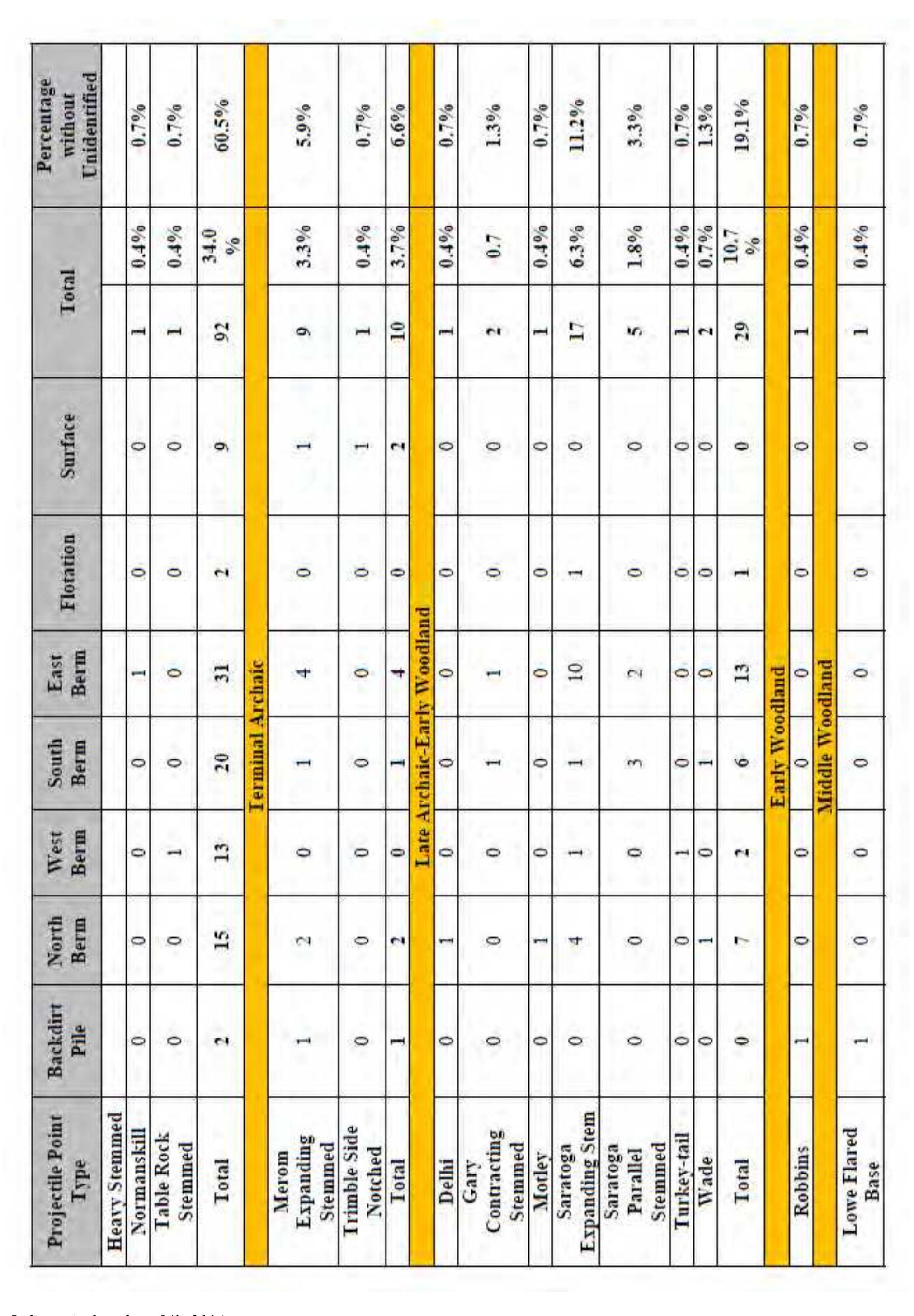 was chosen for further investigation. This rock-lined pit yielded carbonized plant materials, faunal remains, lithic flakes and a partial projectile point. Its location adjacent to a larger circular feature is also intriguing. Analysis of the remains from Feature 3 are used to identify the feature’s function at this Archaic Period habitation site.